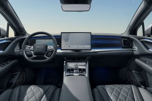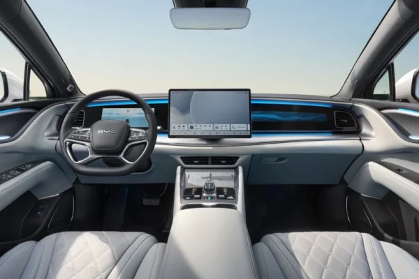 Interior BYD SEALION 7 dirancang dengan sentuhan dinamis, keseimbangan sempurna, dan ruang lapang, menciptakan pengalaman berkendara yang menyatu dan imersif.